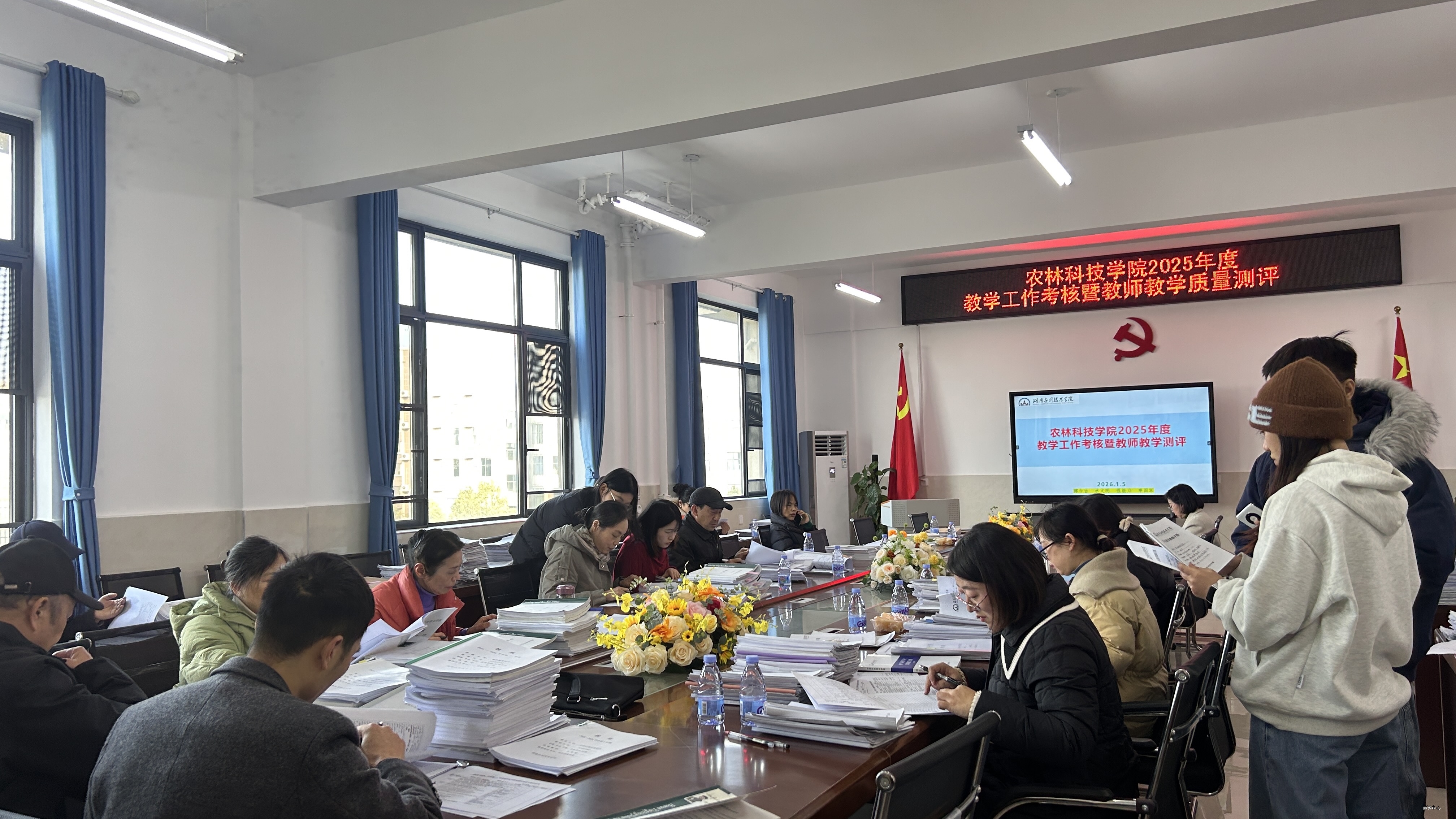 现场测评聚焦教师教案、教学手册、作业(实验报告)、听课记录四类教学资料展开。督导专家严格依据评分标准,坚持统一评价尺度,逐份核查材料的完整性、规范性与实效性。同时,结合二级学院教学工作考核指标,专家团队同步听取各学院年度教学管理工作报告,实现教师个体教学质量测评与学院整体教学工作考核的有机衔接。